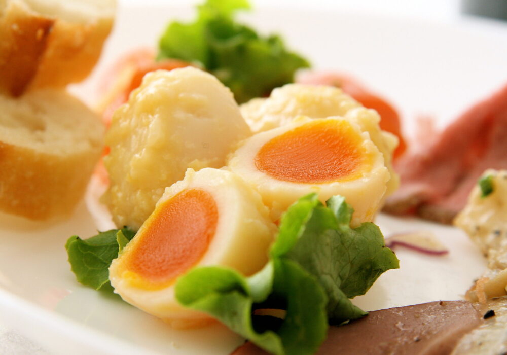 「プチとろダシ醤油漬」は旨み溢れるダシ醤油で半熟のうずら卵を漬け込み、黄身をネットリとコク深く仕上げ、口の中で「プチ、とろ」と広がる味わいを実現。未体験の旨さを「半熟」を超える「円熟卵」と表現した商品。「彩郷」は京都の味噌蔵から取り寄せた西京味噌を調合して漬け込んでおり、チーズの様なコクと風味があるプレミアムな円熟卵。